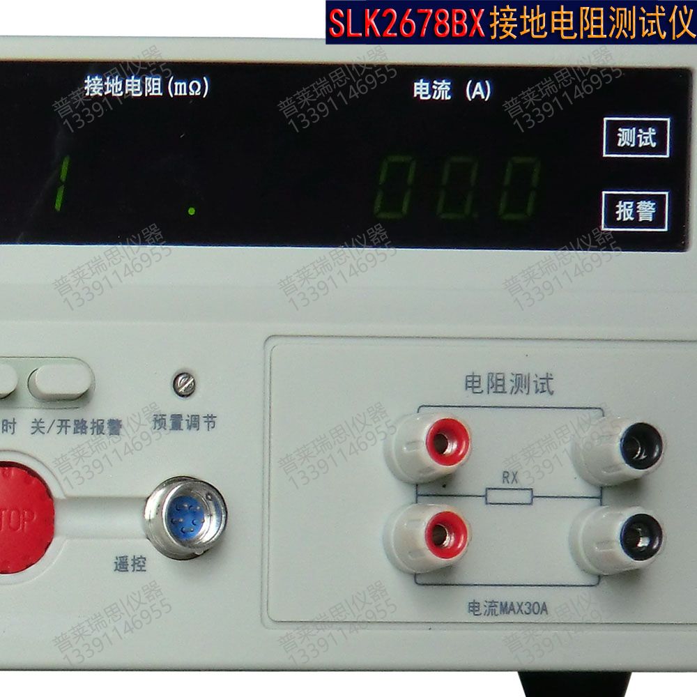 SLK2678BX系列接地电阻测试仪是按照GB﹑IEC﹑ISO﹑BS﹑UL﹑JIS等国际国内的安全标准而设计的,接地电阻的指标是衡量各种电气设备安全性能的重要指标之一。它是在大电流(25A或10A)的情况下对接地回路的电阻进行测量,同时也是对接地回路承受大电流指标的测试,以避免在绝缘性能下降(或损坏)时对人身的伤害。本测试仪是为满足以上要求为生产车间及实验部门提供高性能测试仪器而开发生产的。本仪器对供电电压要求不高,测量精度高,速度快,使用方便,特别适用于要求高的实验室和自动检测线上使用。断路报警选择功能(即开路报警)可以方便地知道仪器是否工作在正常测试状态,用户可以根据实际需要选择是否需要此项功能。本仪器采用三位半数字显示,读数方便,采用优化设计,整机具有极高的可靠性和稳定性。
