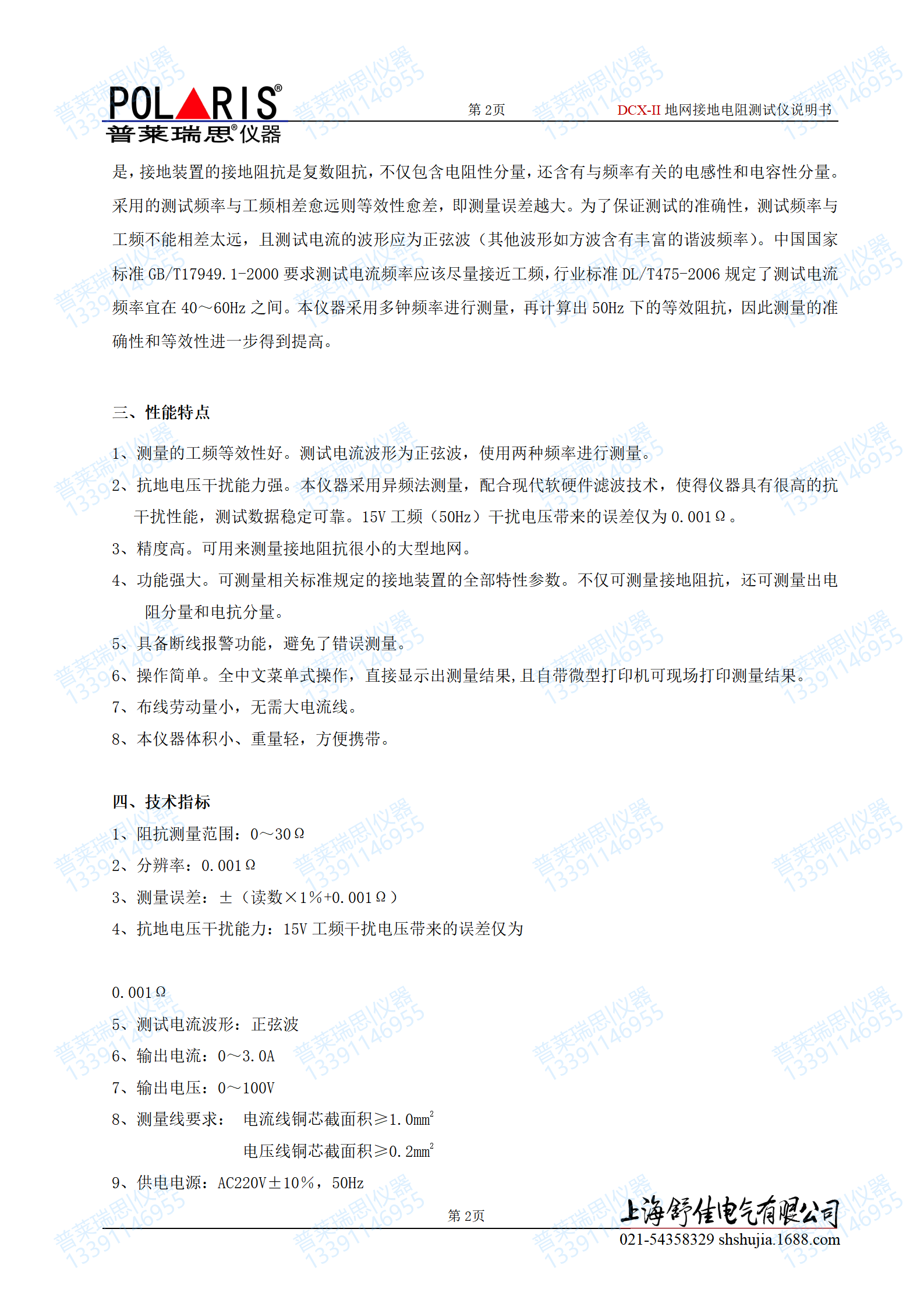 工频接地电阻”。此名称的纠正,在国家标准GB/T17949.1-2000“接地系统的土壤电阻率,接地阻抗和地面电位测量导则第一部分:常规测量”以及电力行业标准“接地装置特性参数测量导则修订稿”(取代DL475-92)中作了阐述。本测量仪采用交流电流进行测试,故所测数值称为接地阻抗,而不再沿用以往的称呼“接地电阻”。