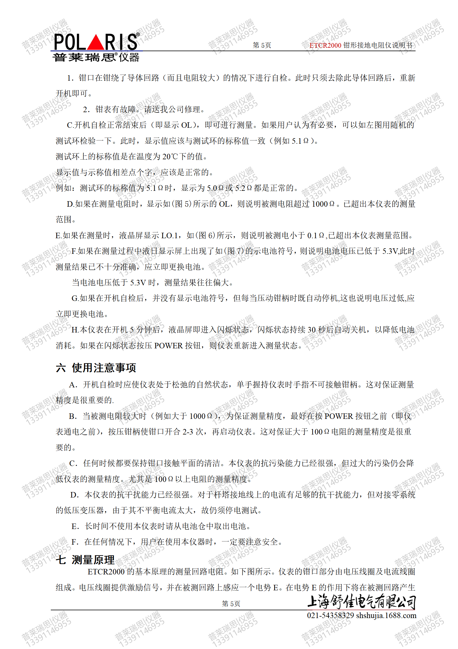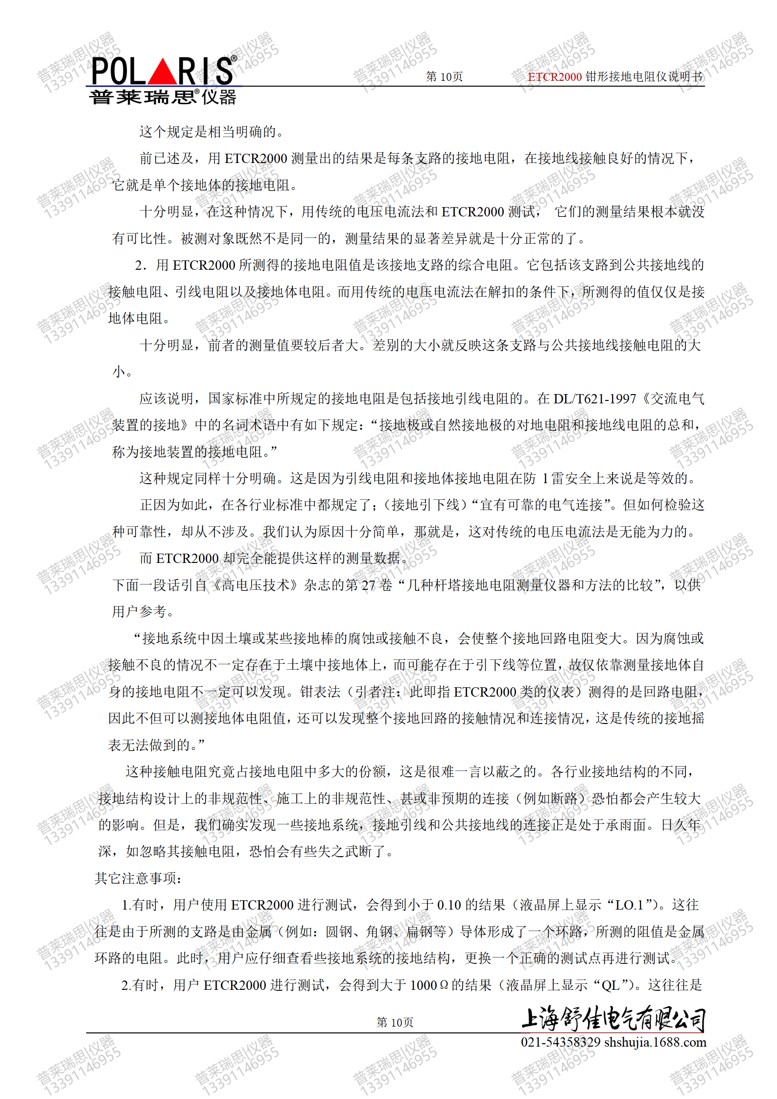 本仪表出厂时,附有一个标准测试环。用户在测量时,可以先对标准测试环进行测量。如果读数准确,那么,测量的接地电阻值就是可信的。