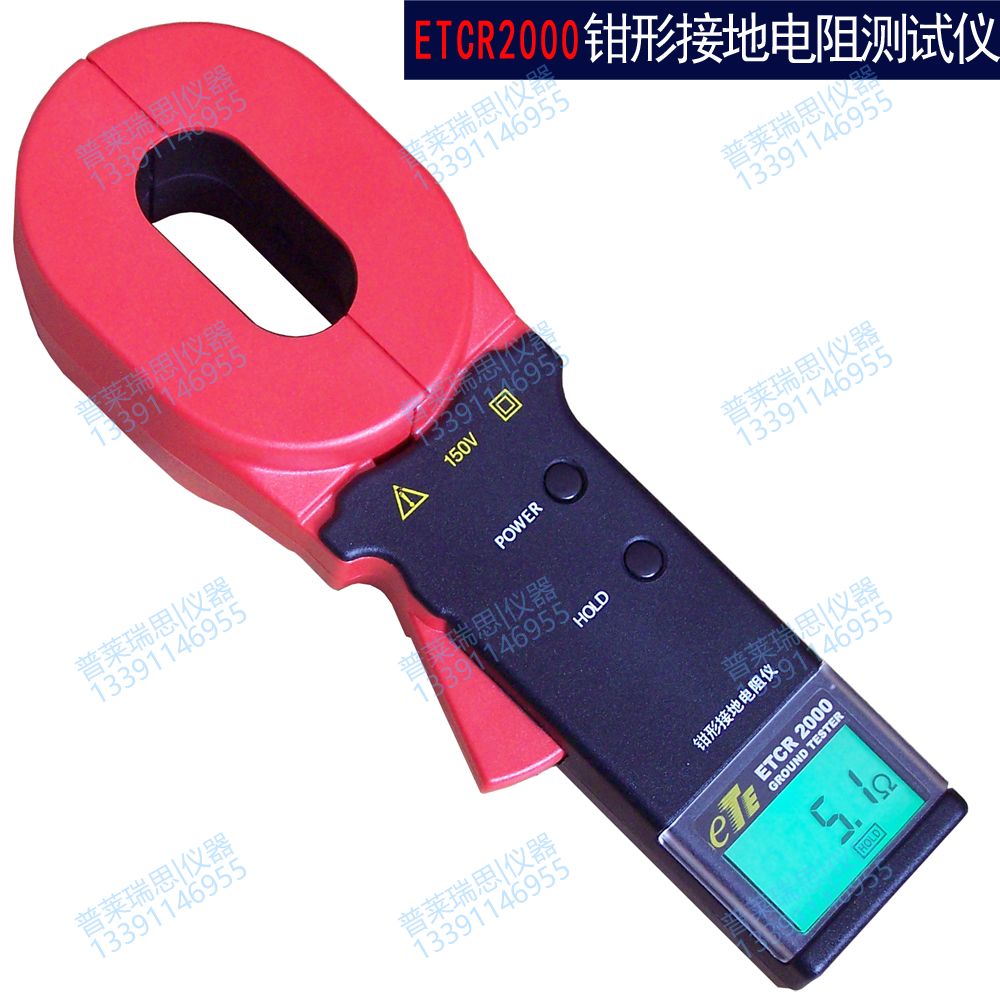 ETCR2000钳形接地电阻仪用于电力、电信、气象以及其它设备的接地电阻测量。电阻仪有长钳口及圆钳口之分,长钳口特别适用于扁钢接地线的场合。传统的接地电阻测量方法是采用电压—