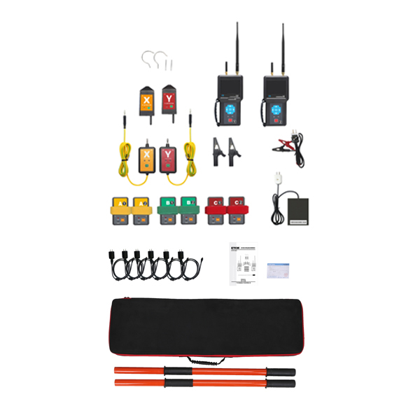 EC1560A多功能卫星远程无线核相仪由主机、高压线路探测器、中置柜探测器、环网柜探测器、伸缩绝缘杆、监测软件、USB通讯线等组成。卫星远程核相时需使用2台主机,近距离核相时使用1台主机。主机采用3.5寸真彩液晶屏,可以同屏显示相位、频率、相序及核相结果;向量图指示、相位指示,清晰直观;具有“X信号正常、Y信号正常、同相、异相”等语音提示功能,使测试更简单轻松。 监测软件具有在线实时监控、历史数据查询、向量图指示、相位指示功能;具有历史数据读取、查阅、保存、打印等功能。