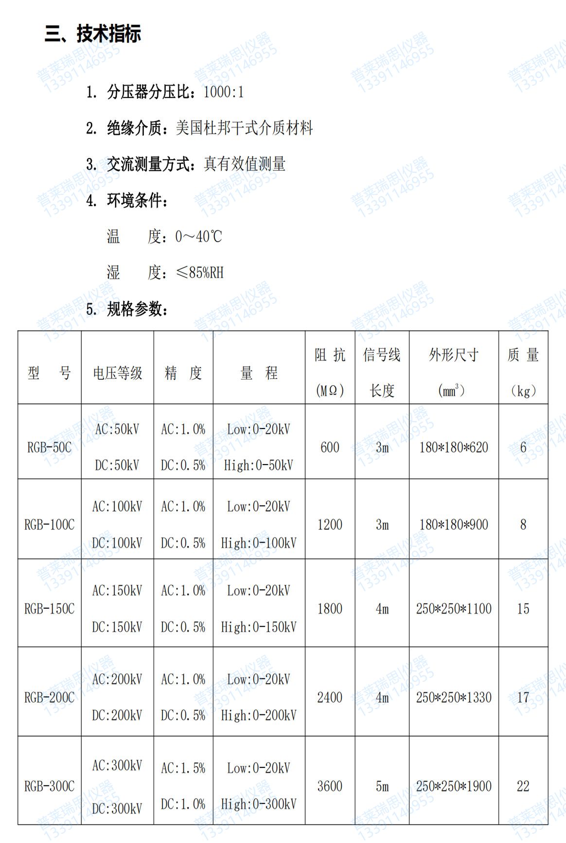 RGB-C 系列交直流数字高压表作为高电压测量之理想设备,主要用于电力系统及电气电子设备制造部门测量工频交流高电压和直流高电压。RGB-C 系列交直流数字高压表由高压分压器和低压显示表两部分组成,两者采用配套电缆连接使用。