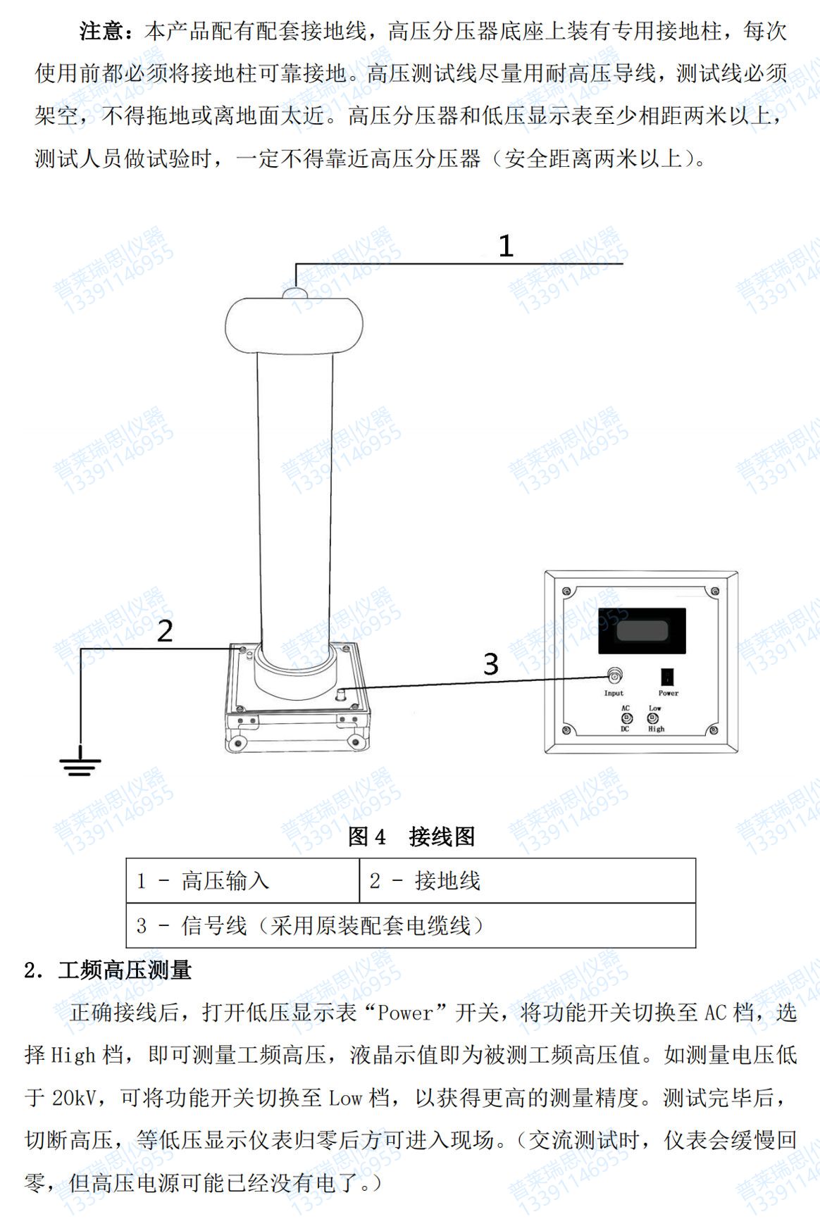 3.安全可靠:SGB-C 系列交直流数字高压表是由高压分压器和低压显示仪表构成,高压分压器采用美国杜邦填充材料,特种工艺灌封,结构更小,重量更轻,内部局部放电量降到最低,可靠性更高。不存在漏油问题。工作时高压分压器和低压仪表采用同轴电缆连接,高低压部分距离较远,工作安全可靠。