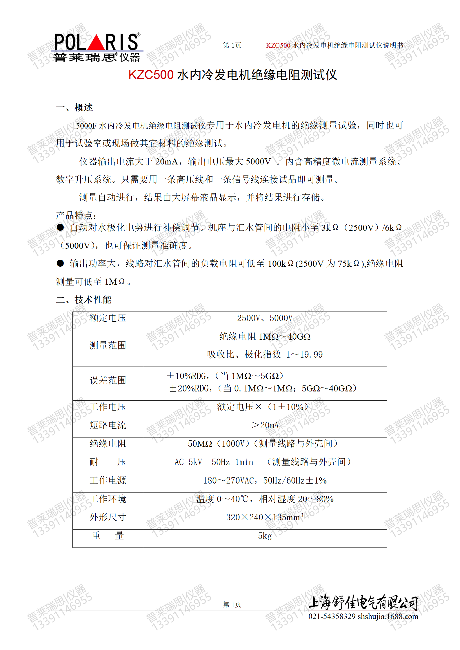 绝缘电阻1MΩ~40GΩ 吸收比、极化指数 1~19.99 |