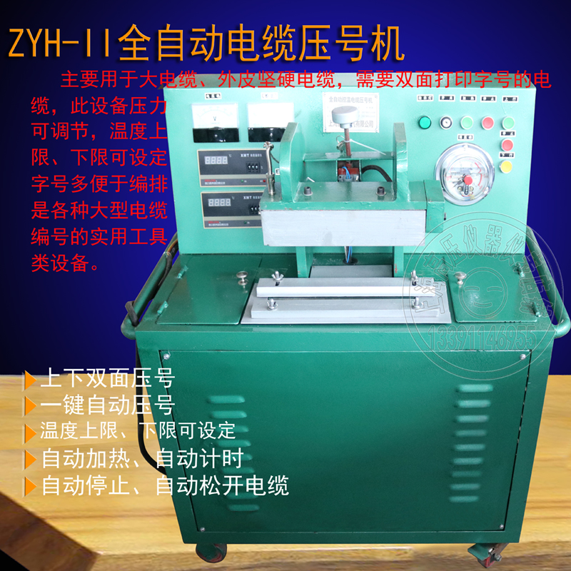 SHJ-II型矿用电缆压号机为自动控温钢质字号排列压号。具有坚固耐用,不易磨损,导热快和在电缆上压出的号码清晰、整齐等优点,是价廉实用的电缆压号设备。
