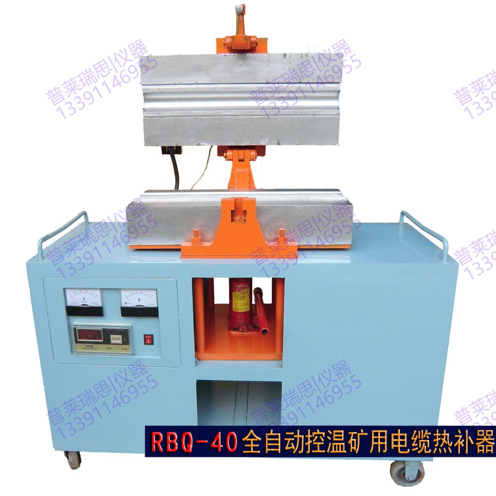 使用前首先接通电源(热补器本身是三相四线接380V电源,如果接220V则把3根火线并在一起接220V火线,零线与220V零线相接即可),供热补机升温,再把所需要热补的温度在控温仪上调到规定的温度指示表上(120℃~180℃),把需补接电缆线放在规定的模具上热压成型,当恒温到规定的温度,控温系统就会自动断电,待温度下降到(100℃~80℃)时方可以将补制的电缆线取出。