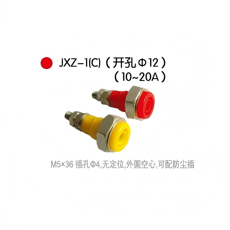 插孔为φ4,下配M5螺母,可配防护套插头用,六角螺母固定