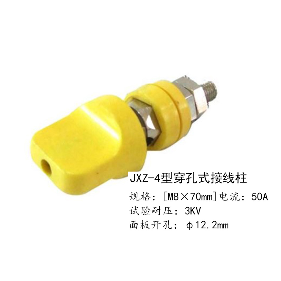JXZ-4(50A)孔型接线柱规格:(M8×70mm)插孔:φ4m电:50A耐压:3KV面板开孔:φ12.2mm