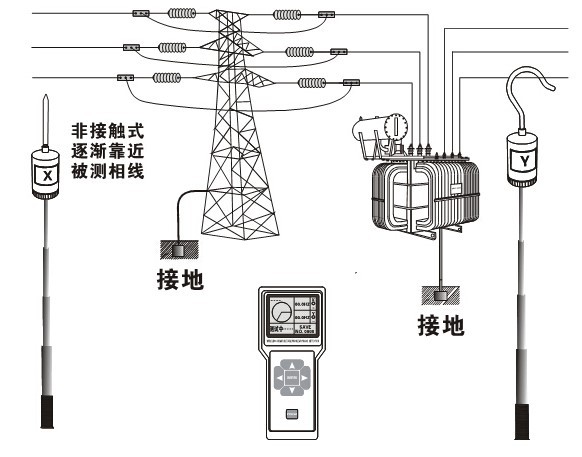 接触式核相:35kV以下的裸导线或220kV以下具有绝缘外皮的导线可以接触导线核相 非接触式核相:当裸线路电压超过35kV时,必须采用非接触测试,探针逐渐靠近导线核相 |