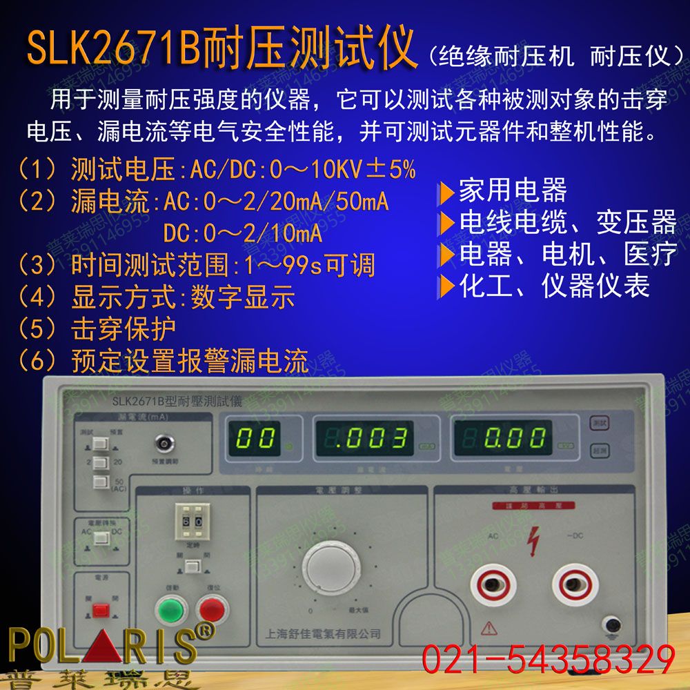 SLK2671B10KV/50mA交直流耐压测试仪,交直流耐电压测_上海电兴科技有限公司-上海交通大学国家科技园021-54361854/5436161954/54358329