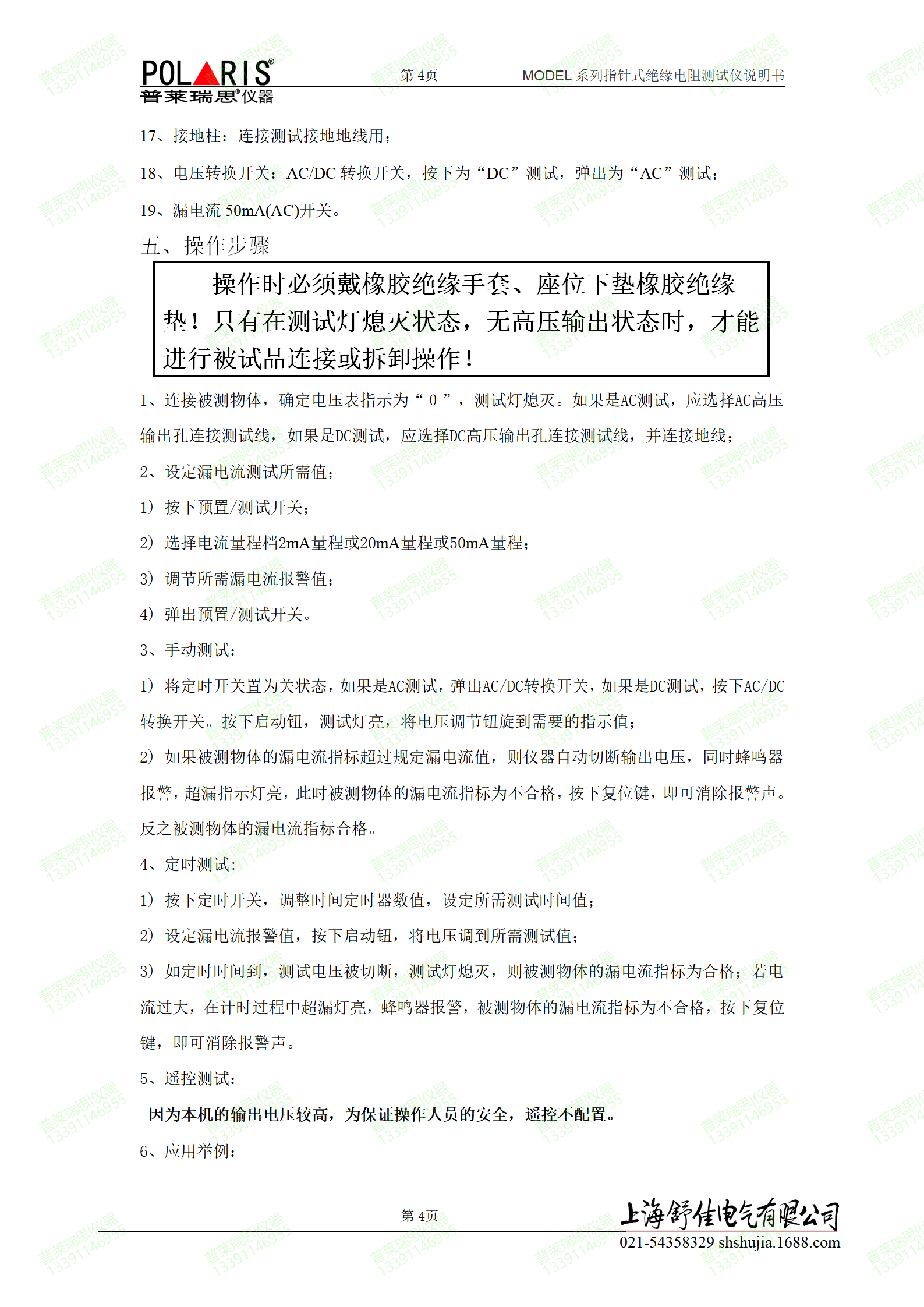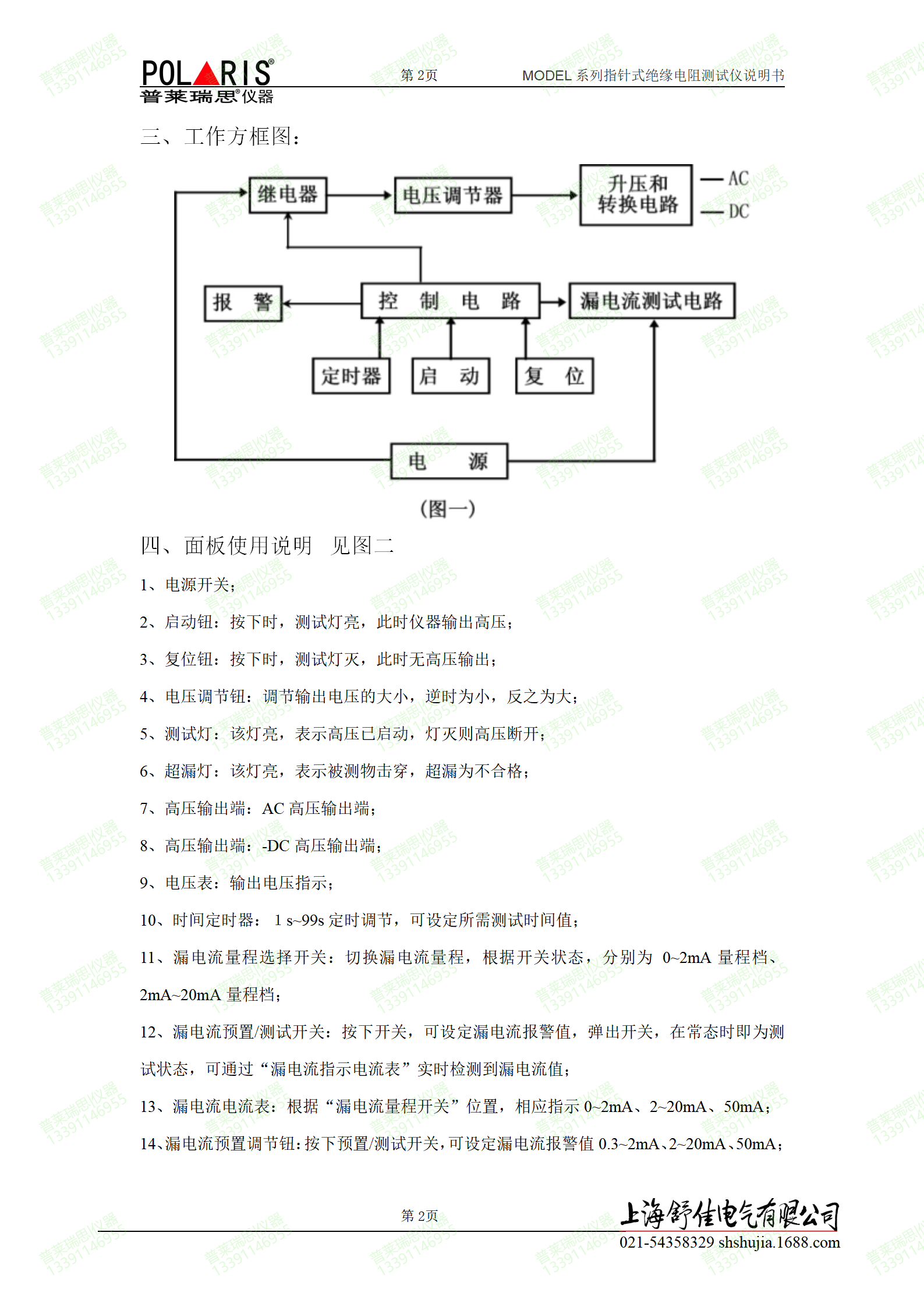 3、漏电流报警值预置范围: AC:0.3~2mA/2~20mA/50 mA