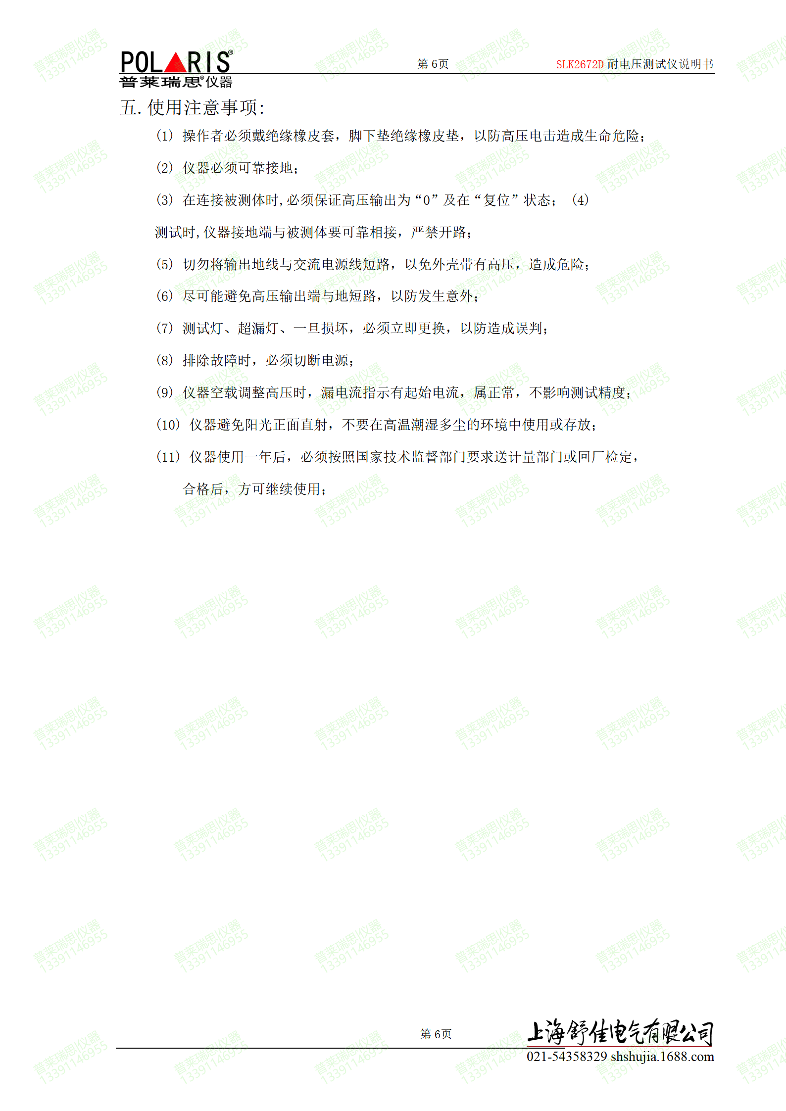 (7)  电源:198~242VAC 47.5~52.5Hz