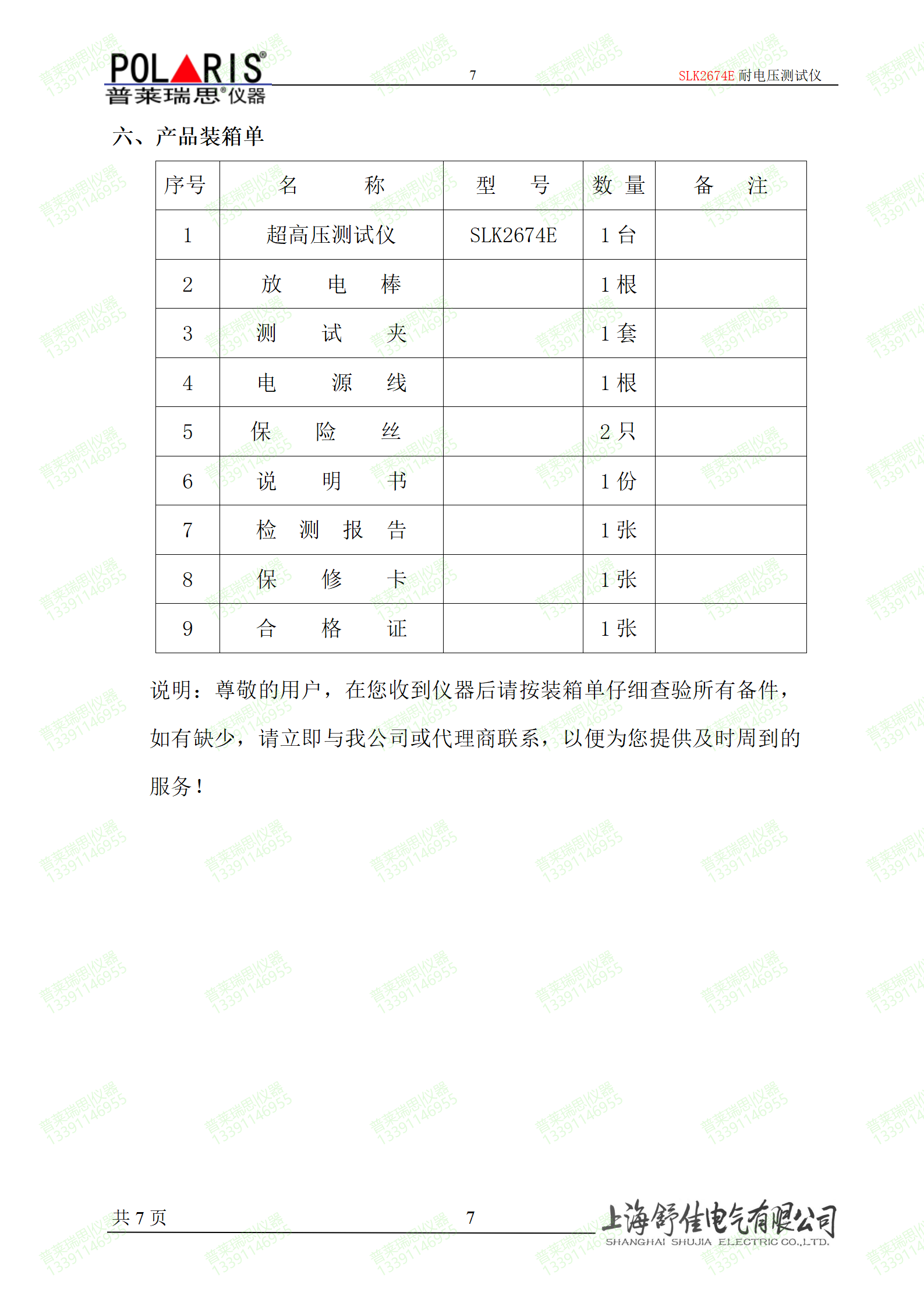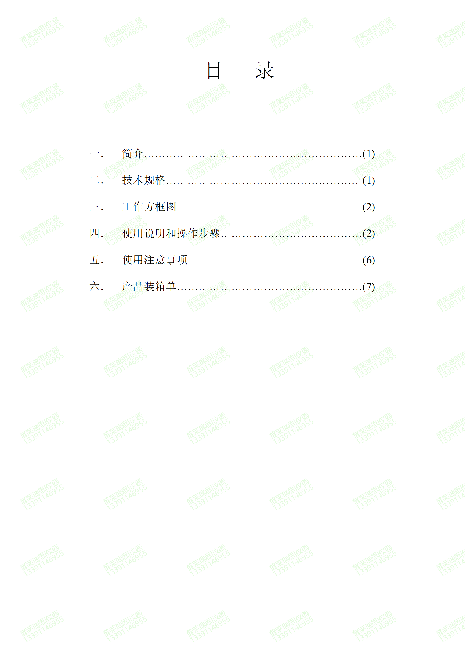(7) 电源:220(1±10%)V   50Hz