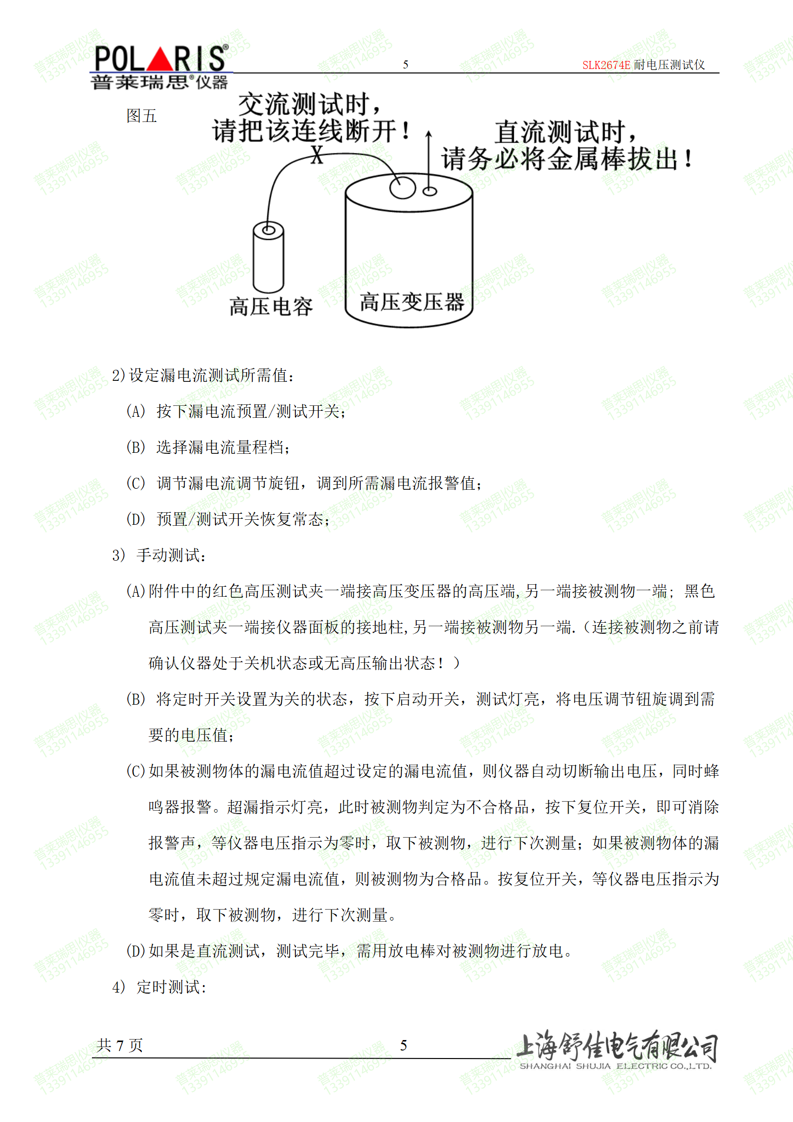 (1) 电压测试范围:AC/DC:0~50kV   ±5% (满度值)