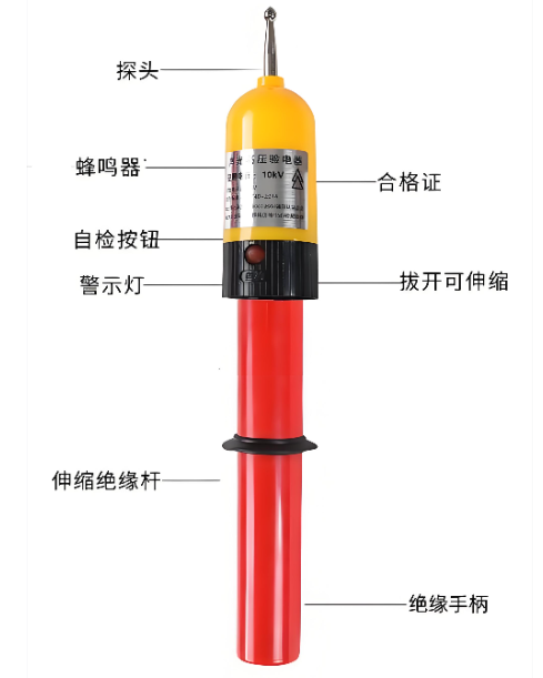 感应交声光验电器使用前应根据被除数测线路调和的额定电压选用合适瑾的指示器和操作杆。验电操作前应对指示器进行自检实验,才能将指示器旋转固定在操作杆(绝缘杆)上,并将绝缘杆拉伸至规定长度,(以节数顺序编号全部依次露出为准)再作一次自栓后才能进行验电操作。
