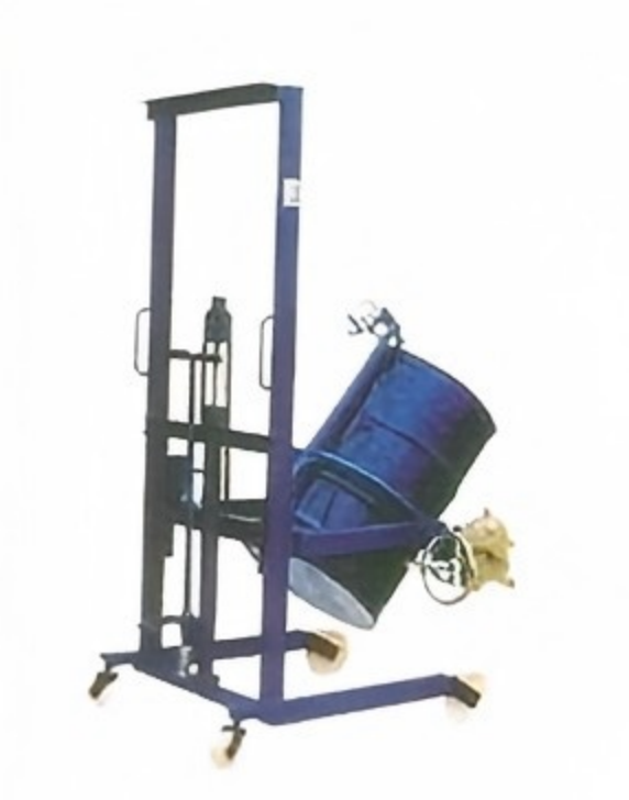 可倾式油桶搬运车设计新颖,结构合理,使用方便,适用于工厂、车间、仓库、油库的油桶装卸、搬运、堆垛。油桶提升后,可以在空中作大于180度的翻转,停留作业,特别适用于化工