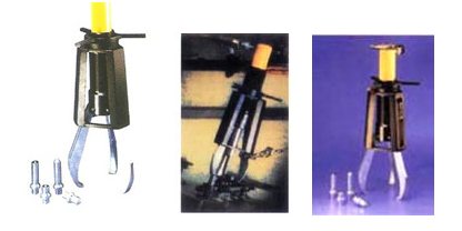 液压拉马是以液压起动杆直接前进移动,故推动杆本身不作转动。钩爪座又可随螺纹直接作前进后退之调距,操作时只要把手前后小幅度摆动,油压起动杆前移,钩爪相对应后退,把被