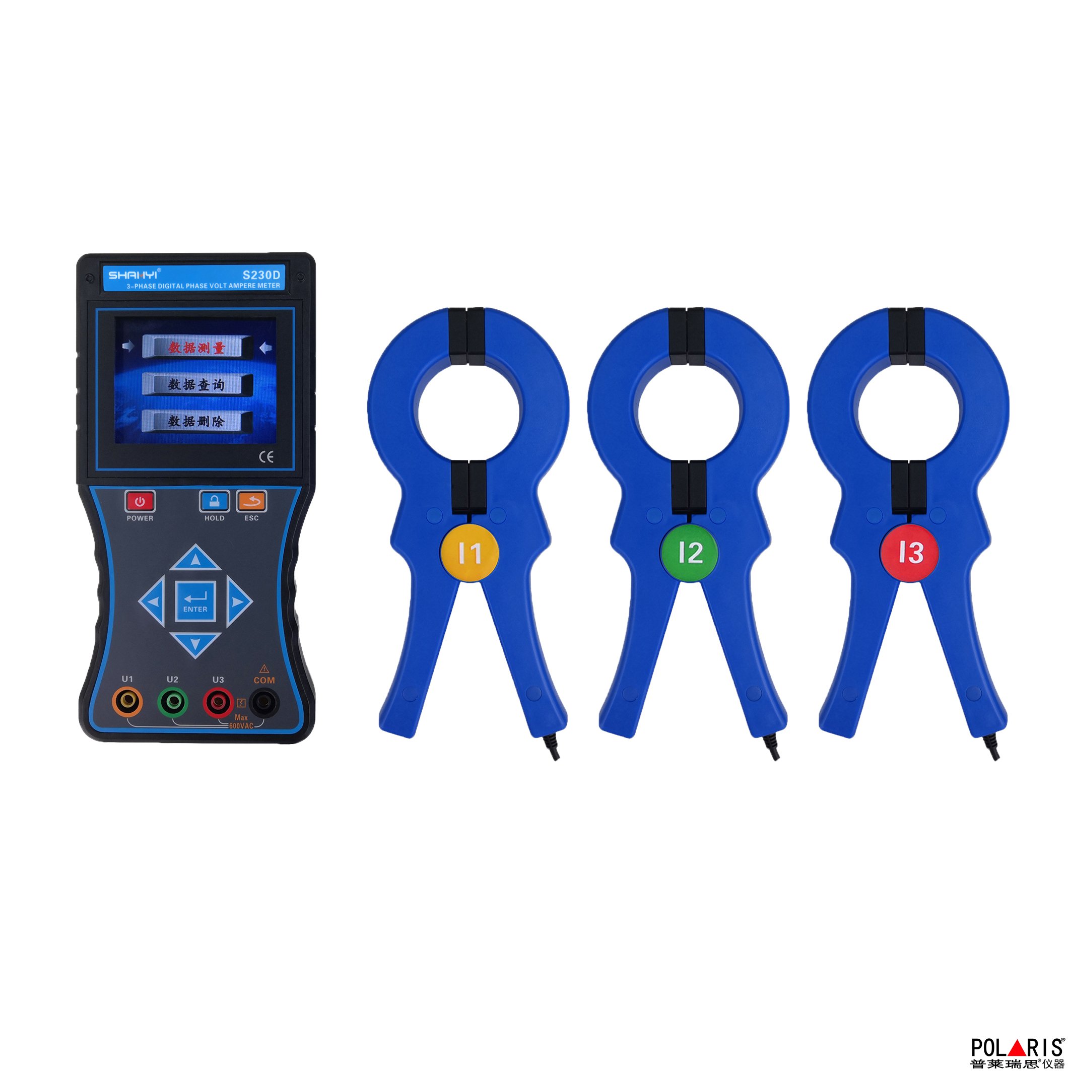 S230D三相智能相位伏安表是一款专为现场测试的多功能智能仪表,由主机、电流钳(3把)、测试线(4条)等组成。主机采用3.5寸真彩液晶屏,图形菜单界面显示,向量图指示,一目了然。选用大口径电流钳能测试1000A电流。仪表可以在被测回路不开路的情况下,同时测量三相交流电压、电流、电压间相位、电流间相位、电压电流间相位、频率、相序、有功功率、无功功率、视在功率、功率因数、电流矢量和,判别变压器接线组别、感性、容性电路,测试二次回路和母差保护系统,读出差动保护各组CT之间的相位关系,检查电度表的接线正确与否,检修线路设备等,为用电检查人员提供一种安全、准确、便捷的智能仪表。适用于电力、石油化工、冶金、铁路、气象、工矿企业、科研院校、计量部门等。尤其适用于大功率三相电机、电能计费系统及继电保护系统的电参数测试。