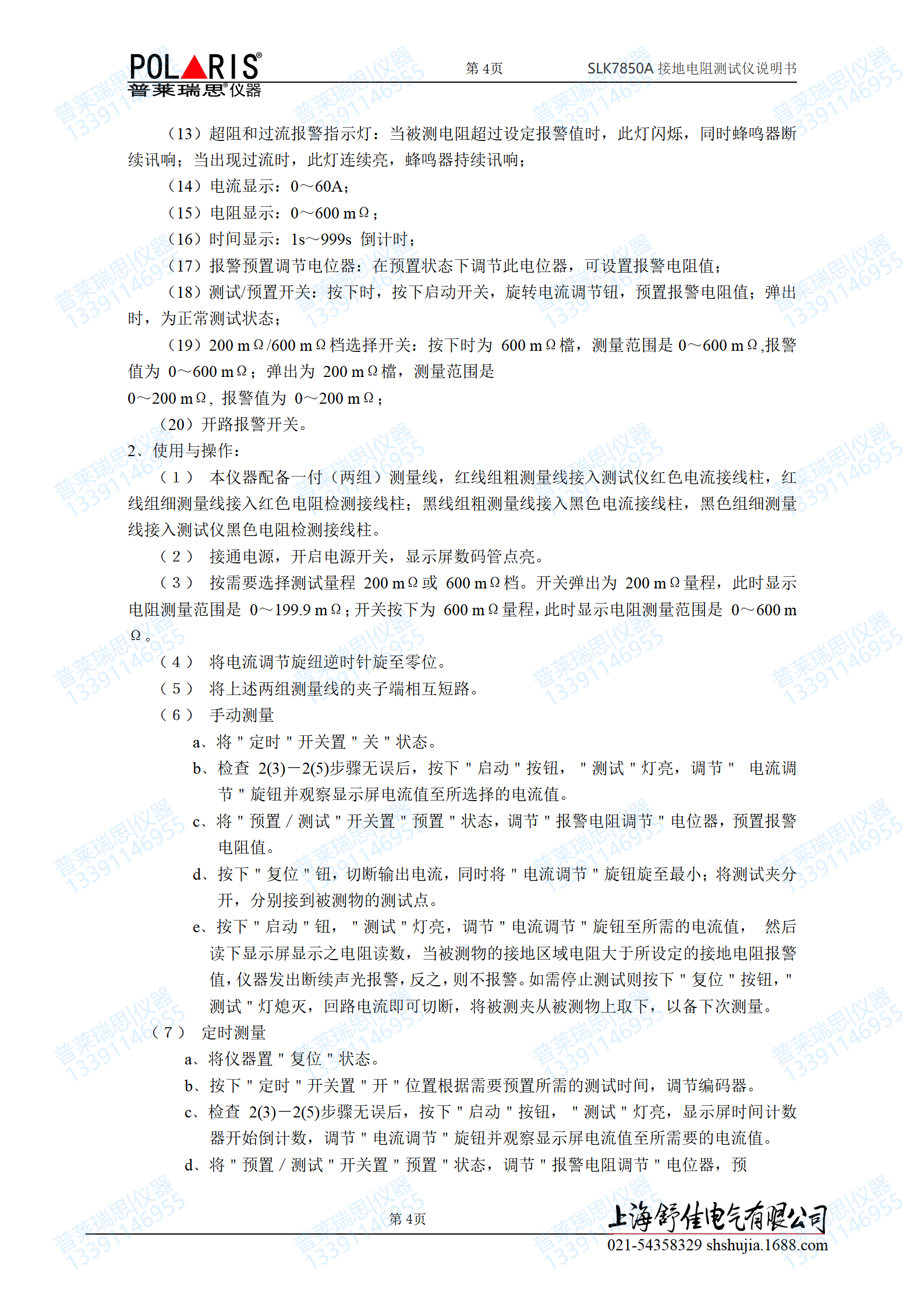 SLK7850A接地电阻测试仪使用说明书